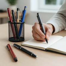 Kalem, ajanda, kupa, masaüstü setleri ve benzeri ofis ürünleri, çalışma alanlarında markanın sürekli görünür olmasını sağlar. Günlük kullanım sıklığı yüksek bu ürünler, kurumsal kimliği sade ve etkili biçimde yansıtır. Dolunay Ofset, ofis ihtiyaçlarına yönelik fonksiyonel ve estetik çözümler üretir.